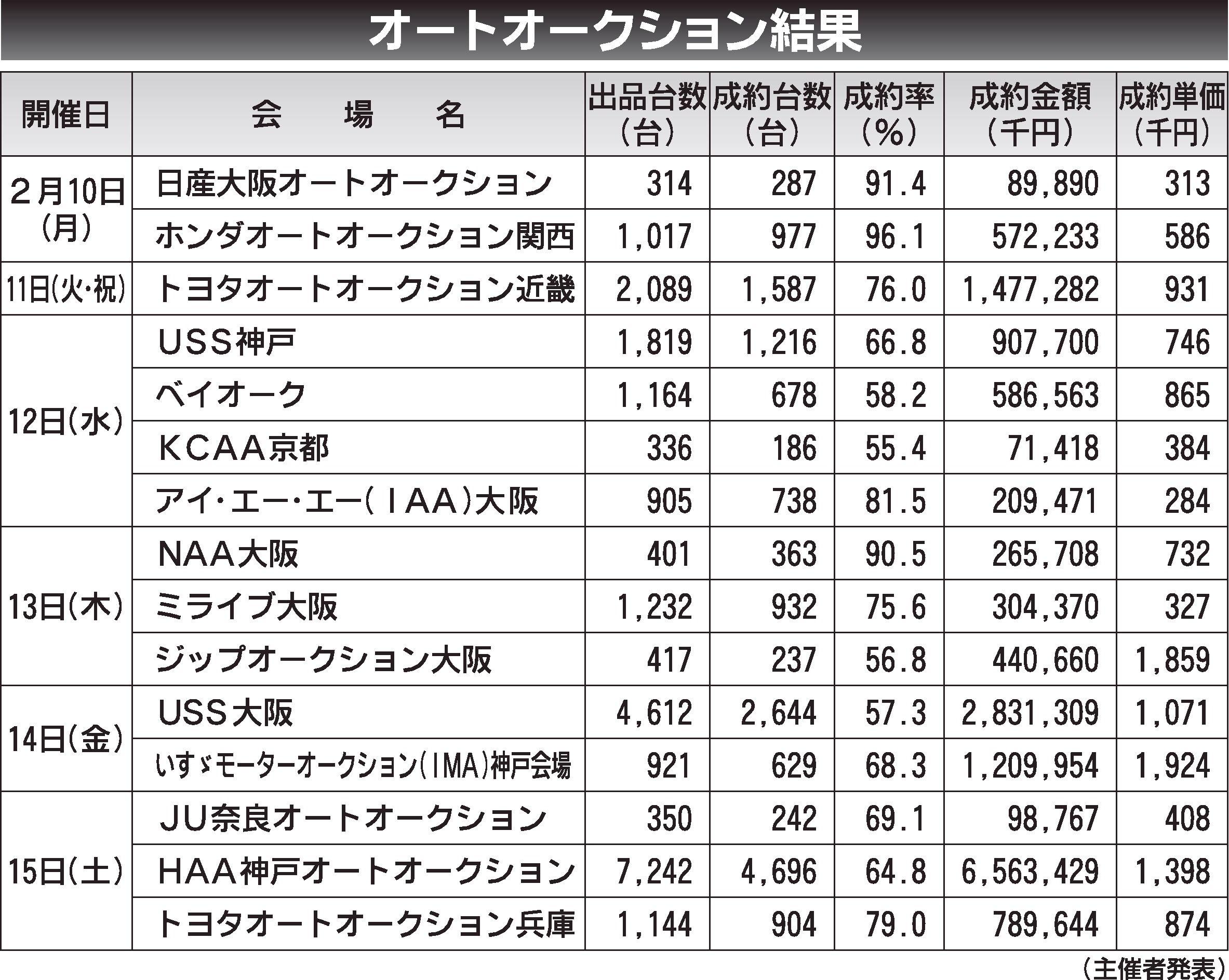 〈オートオークション結果〉近畿地区 2025/2/10~15