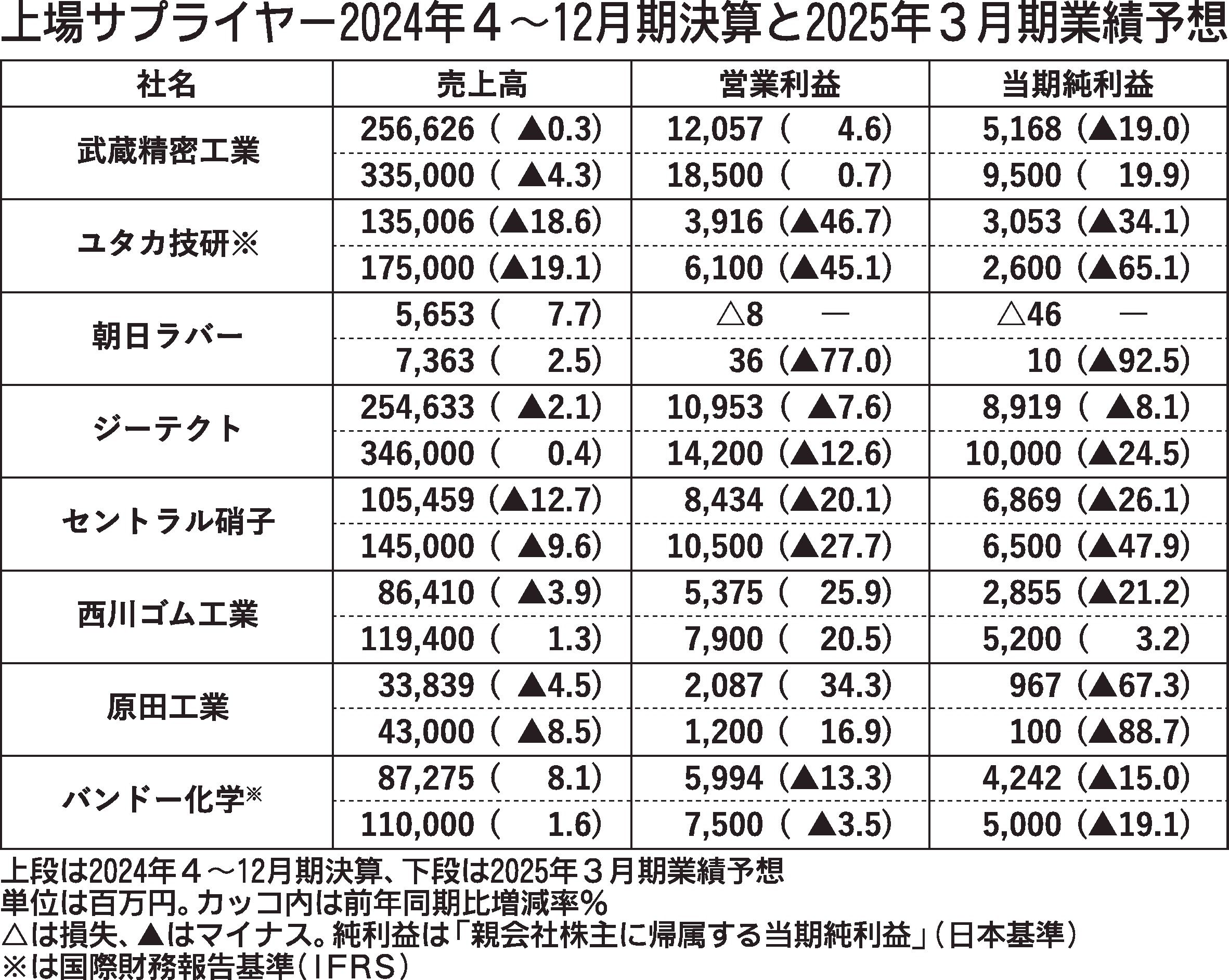 〈上場サプライヤー2024年4~12月期決算と2025年3月期業績予想〉(2/14付②)