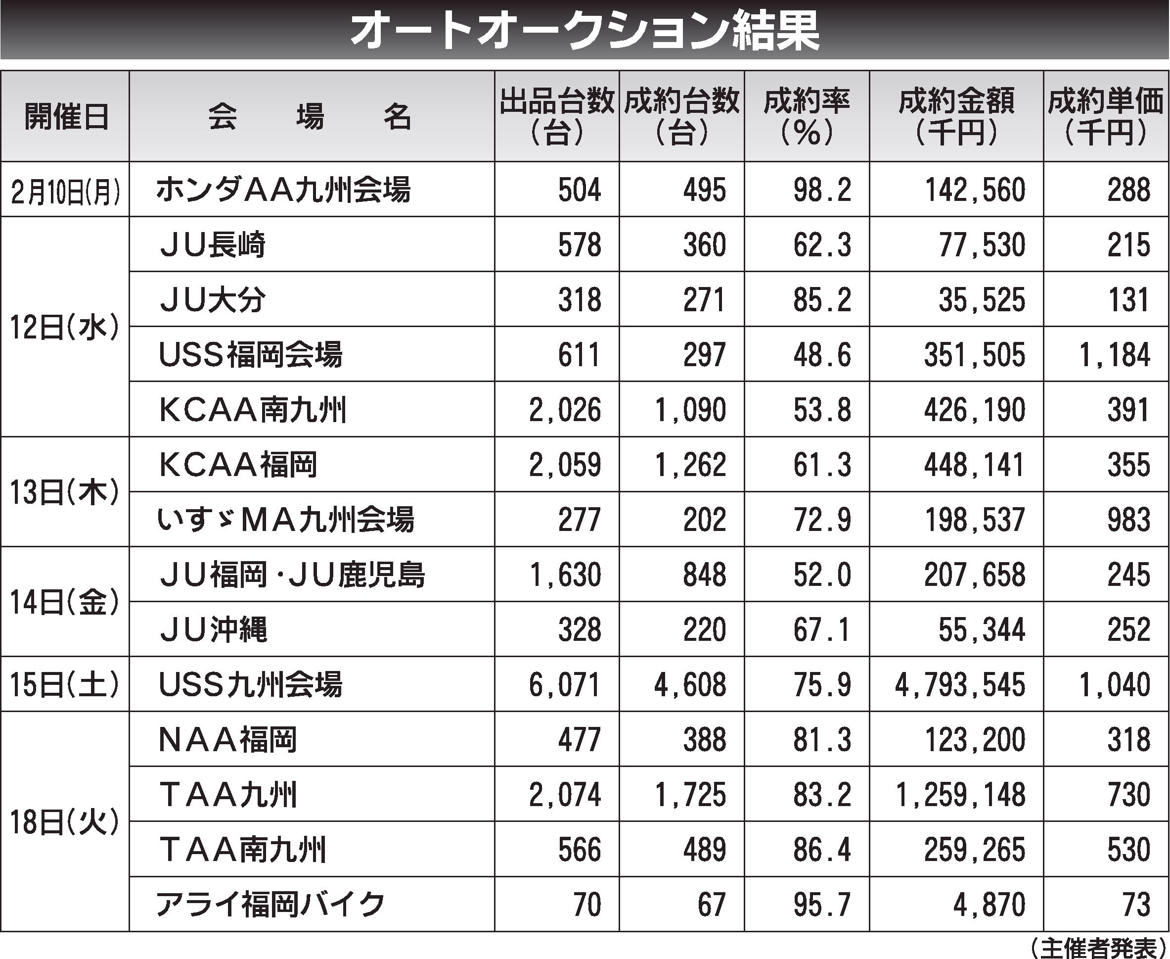 〈オートオークション結果〉九州地区 2025/2/10~18