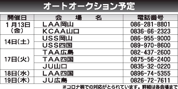 〈オートオークション予定〉中四国地区 2023/1/13~19