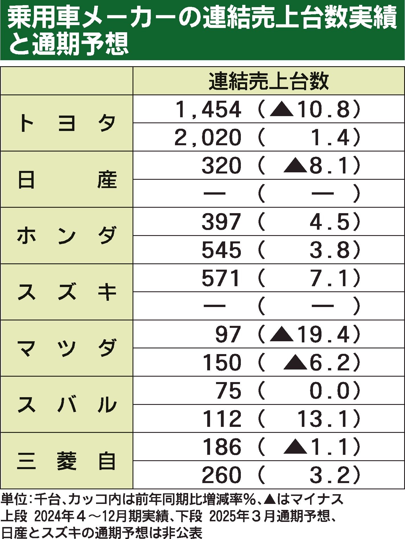 少子高齢化で世界の先頭を走る日本。供給制約が薄れ、新車販売は回復途上にあるが、コロナ禍前の水準(2019年で約469万台)には届いていない。2024年4~12月期は乗用車7社中、4社の国内販売(売り上げベース)が前年実績を下回った。母国で...
