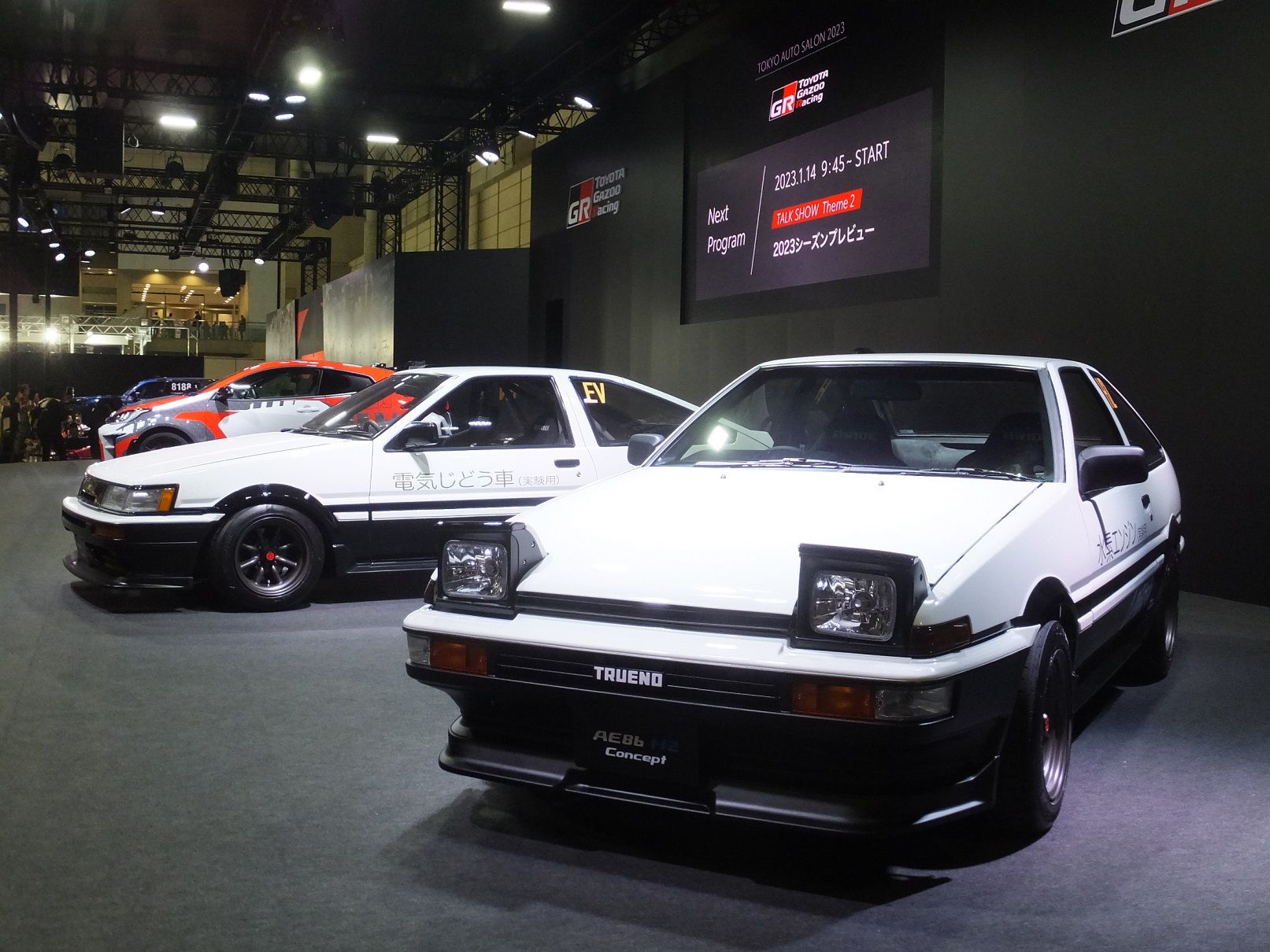 トヨタ自動車は1月13日、東京オートサロン2023で、4代目「カローラレビン/スプリンタートレノ」(AE86)を電気自動車(EV)と水素エンジン車に改造したコンセプトカーを披露した。豊田章男社長は「新車をEVにするだけでは、2050年のカーボンニュートラル(温室効果ガス排出実質ゼロ)は達成できない。保有車、つまり誰かの『愛車』にも選択肢を残していくことが大事だ」と述べ、旧車のコンバージョンによる脱炭素化の可能性を示した。
