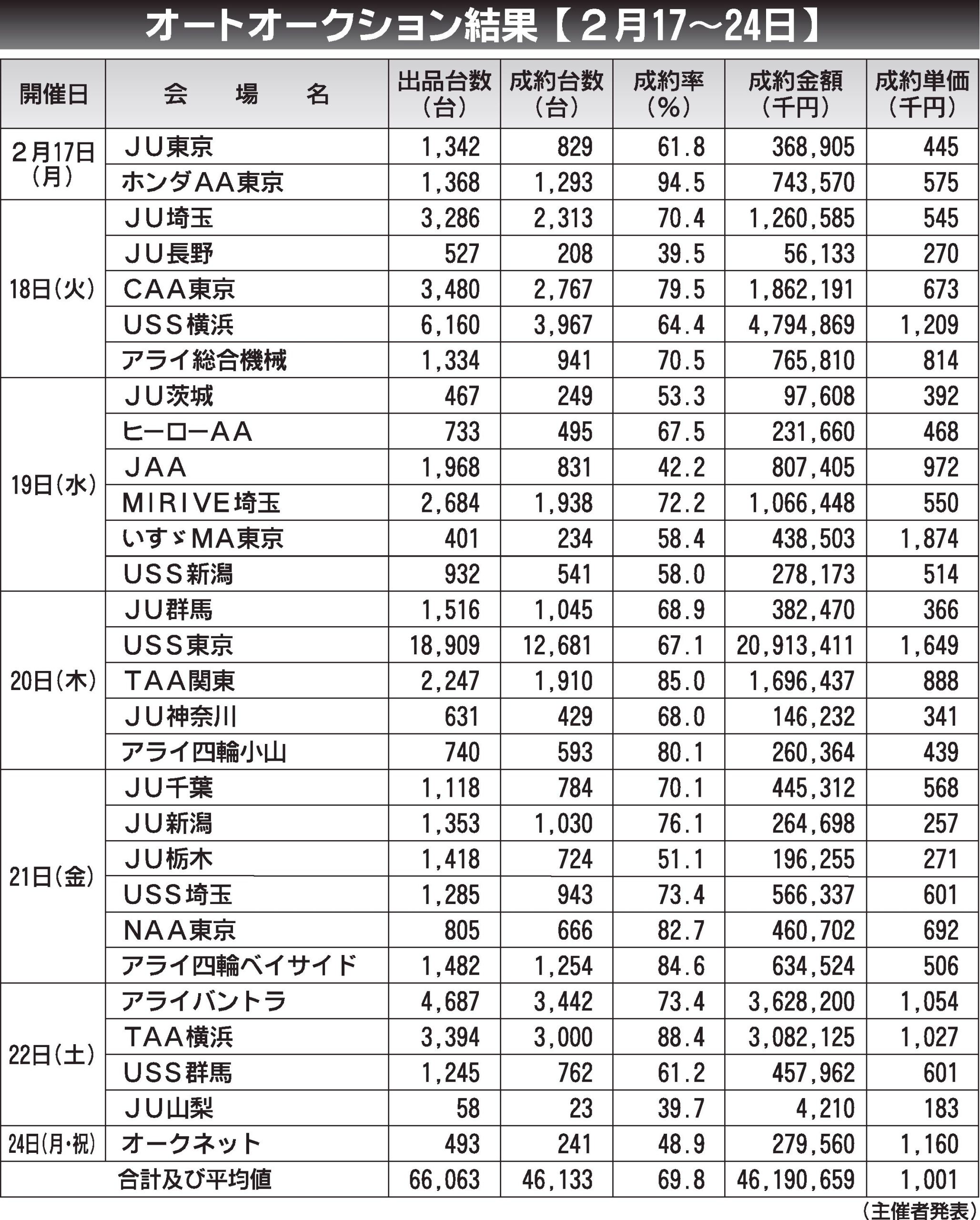 〈オートオークション結果〉首都圏 2025/2/17~24