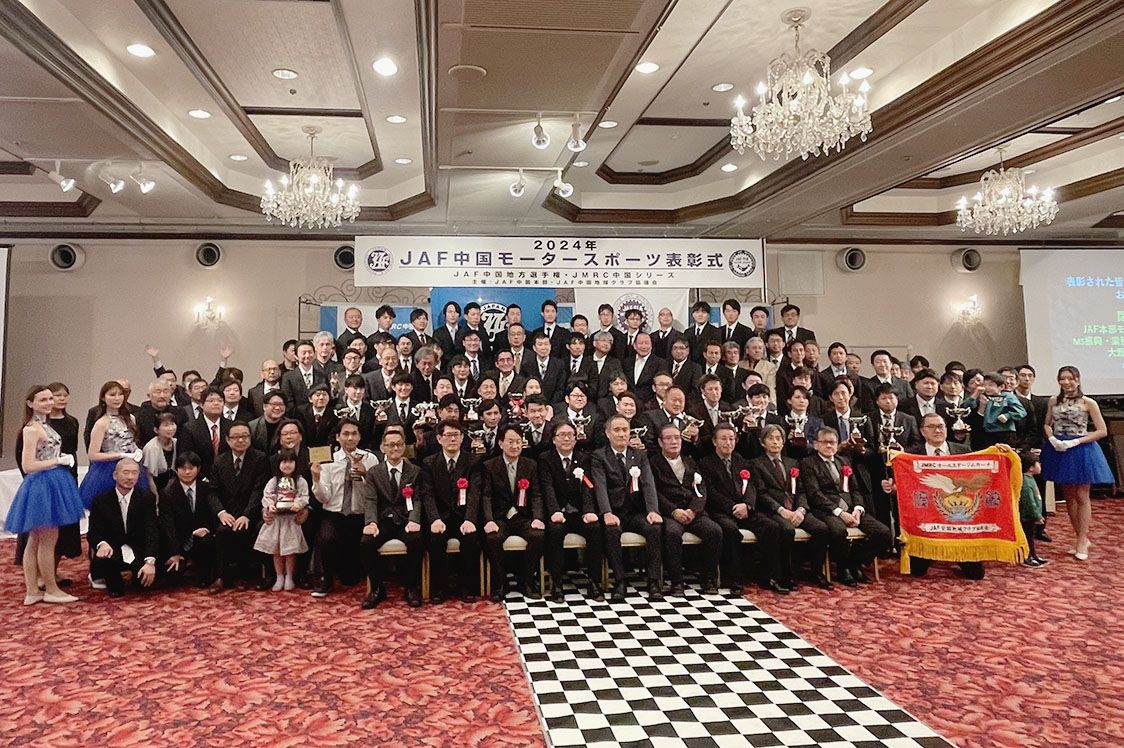 日本自動車連盟(JAF)中国本部(岡本精二本部長)は、広島市内のホテルで「2024年JAF中国モータースポーツ表彰式」を開催した。関係者ら約170人が出席し、2024年にJAF中国地方選手権およびJMRC中国シリーズなどで優秀な成績を収め...
