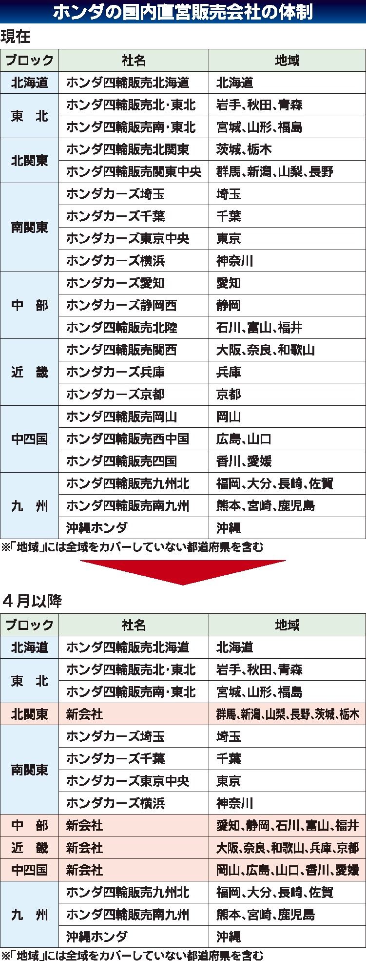 ホンダは4月、国内の直営販売会社体制を刷新する。同一地域内で複数の法人を抱える中部や関西、北関東・甲信越、中四国地域をそれぞれ1社の統括体制に移行する。直営販社を広域・大型化し、人材不足のほか、車両の電動化・電子化に対処する投資余力を確保...