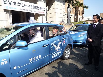 35台の電気自動車(EV)「リーフ」、神奈川県内で営業開始―。 神奈川県、日産自動車、そして神奈川県タクシー協会(大野清一会長)は7日、このほど県内で導入したEVタクシーの合同出発式を開催、県内業界を代表し7社10台のリーフ(ブルー)が県...