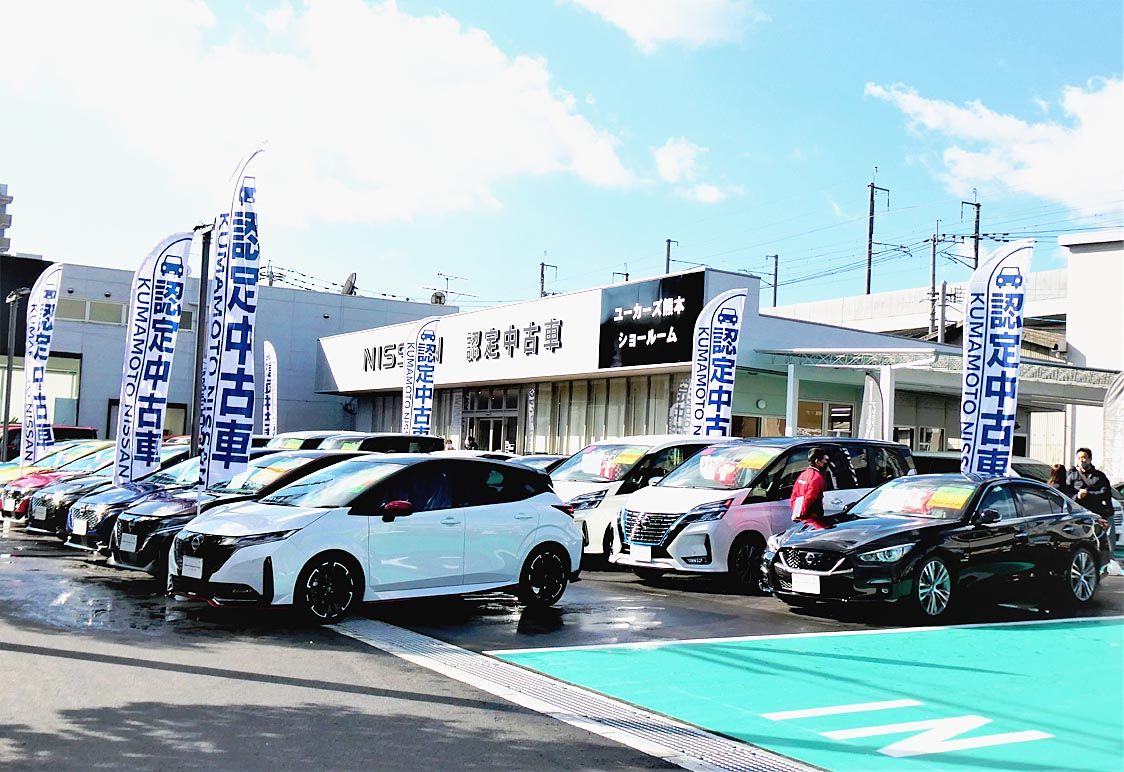 【熊本】熊本日産(古荘雅教社長)は、熊本市西区に中古車拠点「ユーカーズ熊本」を移転オープンした=写真。県内ディーラーでは最大規模の100台を展示し、豊富なラインアップを取りそろえた新店舗で中古車販売を強化する。向かいに位置する本社屋・熊本...