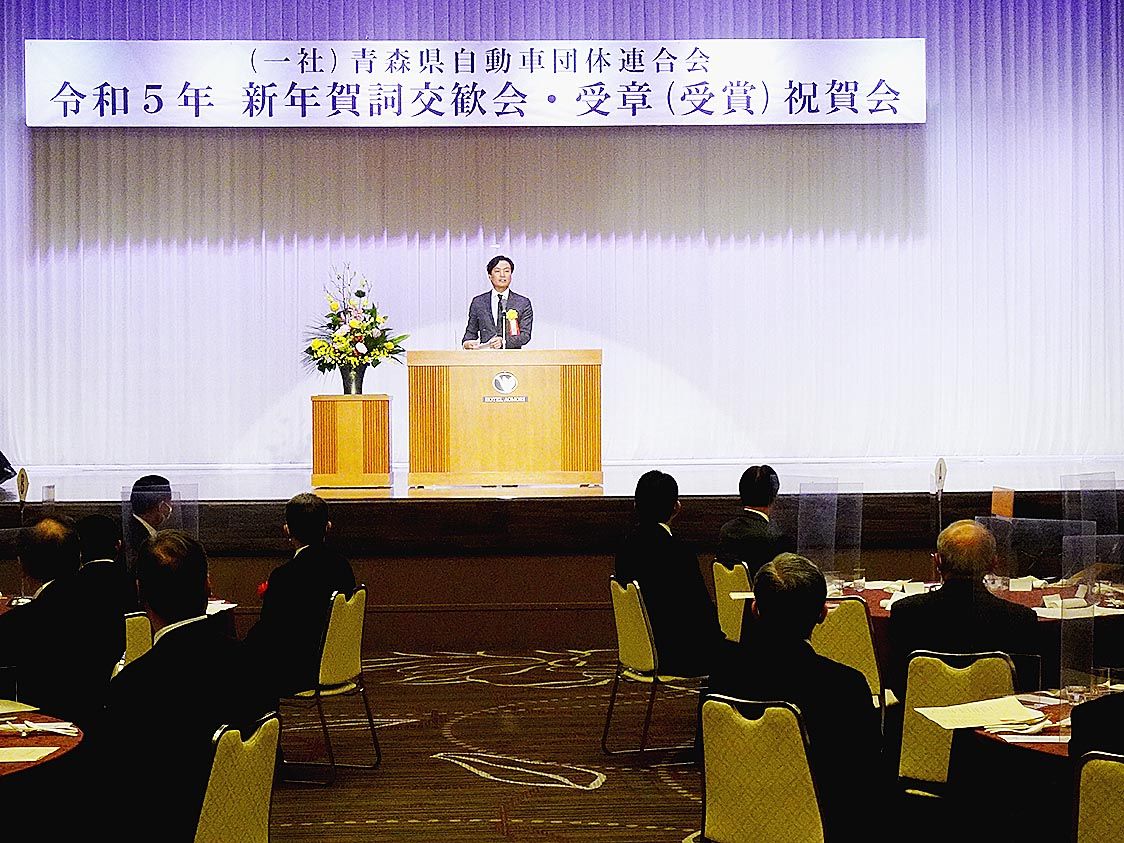 【盛岡】青森県自動車団体連合会(小野大介会長)は、青森市内のホテル青森で「令和5年新年賀詞交歓会並びに受章(受賞)祝賀会」を3年ぶりに開いた=写真。同連合会の構成団体をはじめ自動車関連団体のトップ、役員、地元の国会議員、首長ら合わせて74...
