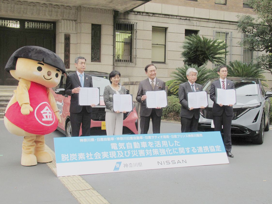 日産自動車と神奈川県内の3販売会社は19日、神奈川県と電気自動車(EV)を活用した連携協定を締結した。EVの普及により脱炭素化を目指すとともに「走る蓄電池」としても活用し、災害時に避難場所の電力を供給できる体制を整える。2018年5月から...