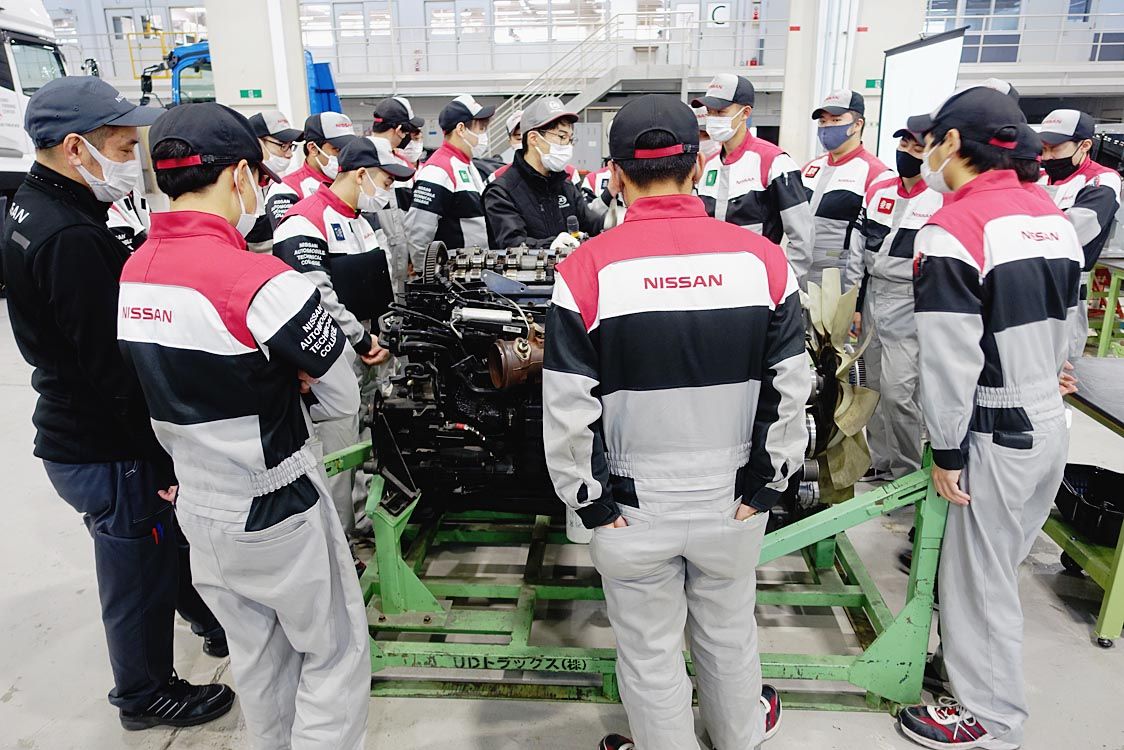 【京都】日産京都自動車大学校(川嶋則生校長)は、久御山町の同校内でUDトラックスと産学連携授業を行い=写真、1・2年生にトラックのディーゼルエンジン(DE)や燃料噴射方式などの知識や技術を解説した。 今回の授業は、16~18日に企業や行政...