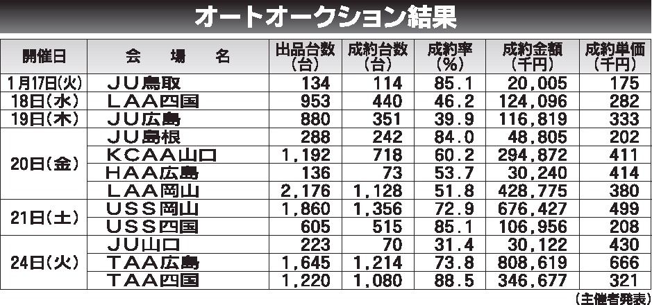 〈オートオークション結果〉中四国地区 2023/1/17~24