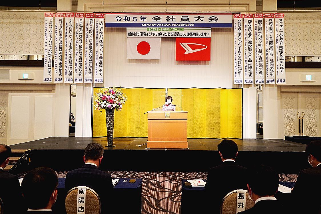 【山形】山形ダイハツ(鈴木肇子社長)は、山形市で「令和5年全社員大会」を開催した=写真。3年ぶりとなる会場開催に役員と社員約240人が出席し、2023年の経営方針を確認した。また、22年に優秀な成績を収めた社員と拠点を表彰した。 あいさつ...