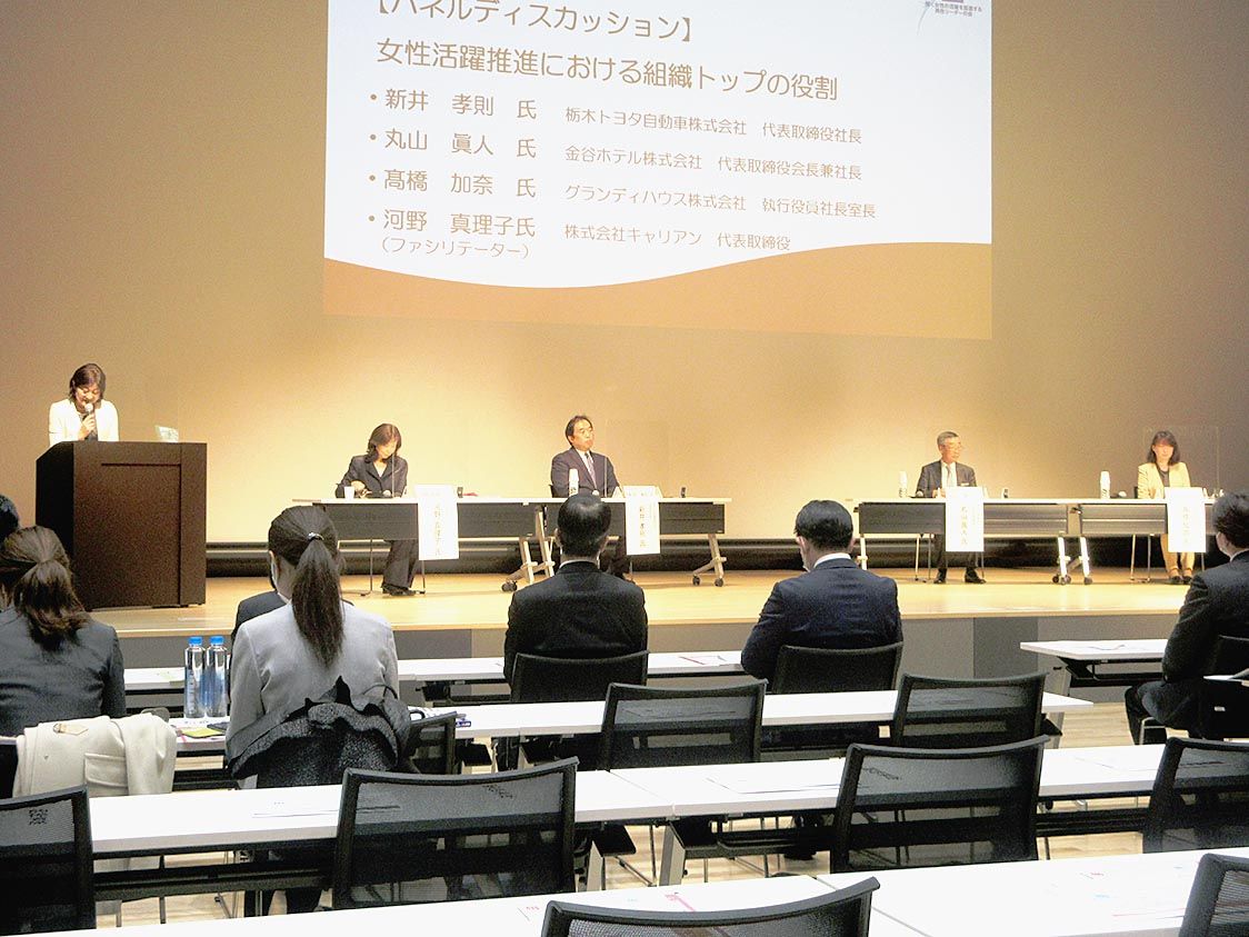 【宇都宮】内閣府は、JR宇都宮駅東口の交流拠点施設ライトキューブ宇都宮で「輝く女性の活躍を加速する男性リーダーの会」地域シンポジウムを開催し、同会場とオンラインを合わせて300人弱が参加した。今年5月、G7広島サミット開催に合わせて10を...