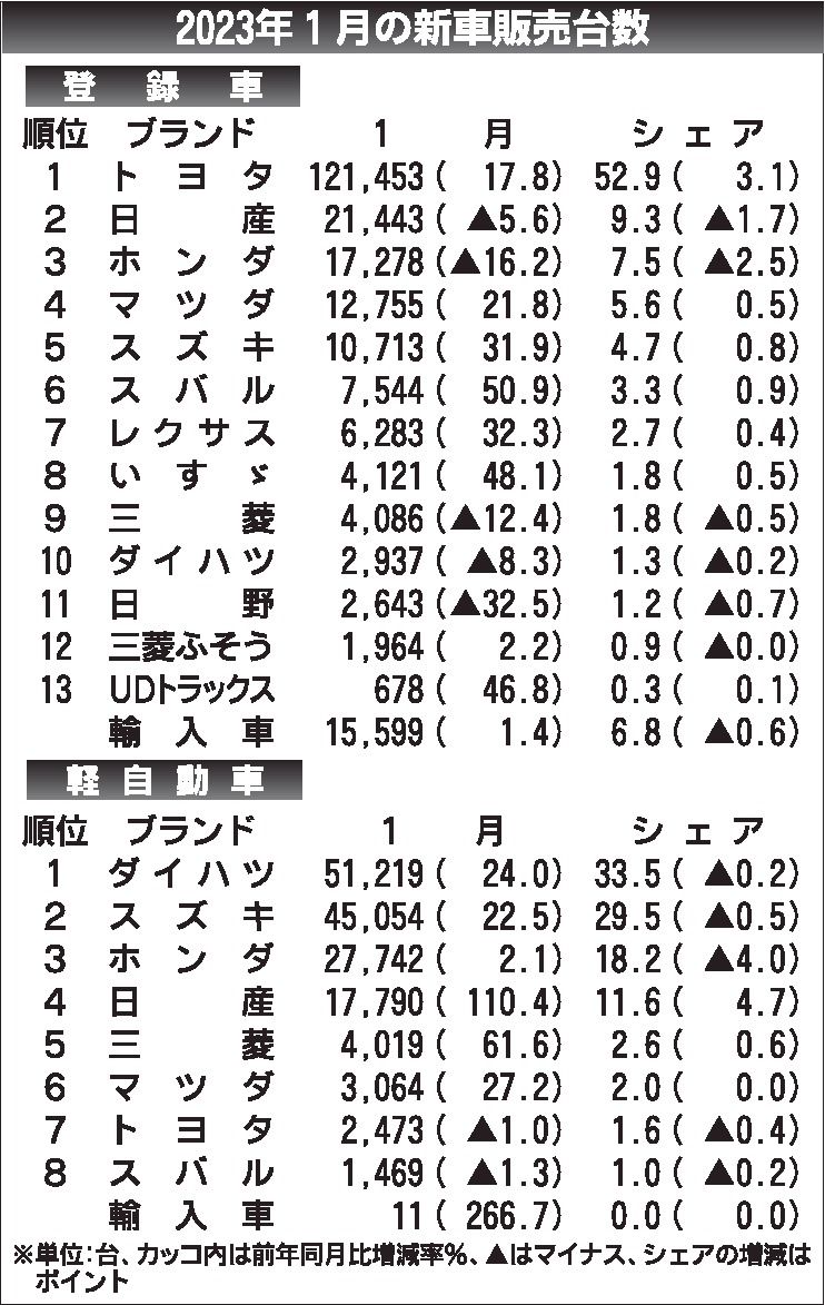 〈2023年1月の新車販売台数〉
