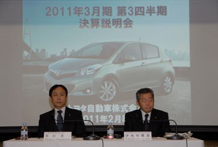 トヨタ自動車が8日、東京都文京区の東京本社で開いた2010年4~12月期連結決算に関する説明会の主な質疑応答は次の通り。 ―第3四半期決算の手応えは 伊地知隆彦専務「10~12月の3カ月間は為替が大幅に円高に振れ、日本の販売なども減少した...