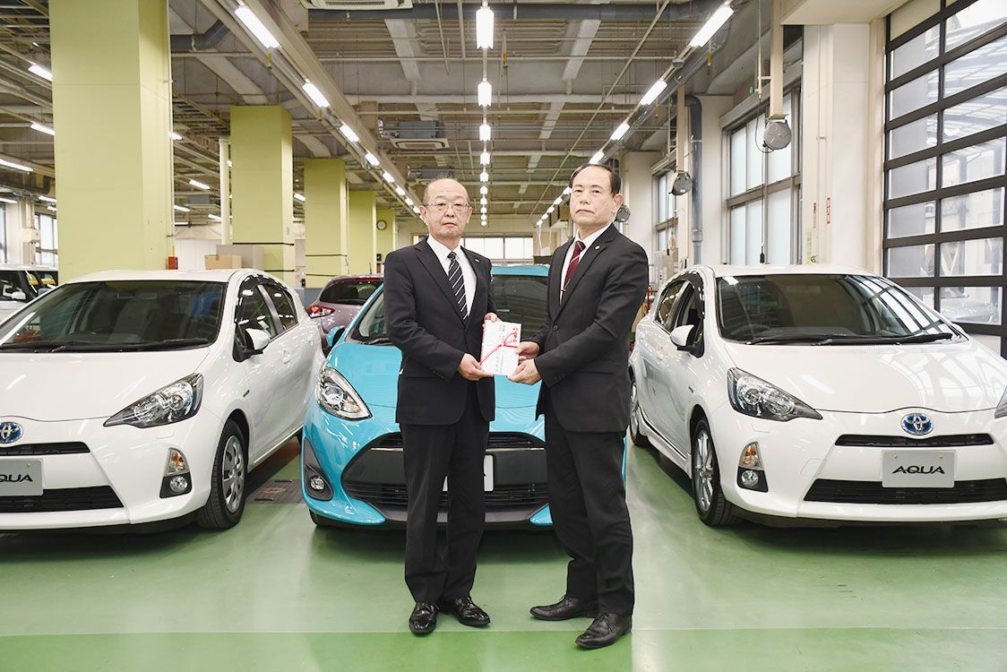 ネッツ静岡、静岡工科自大に教材 アクアの中古車3台