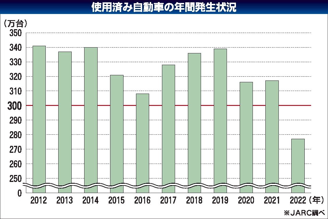 2022年の使用済み自動車発生件数、11年ぶり300万台割れ 新車不足による下取り減響く