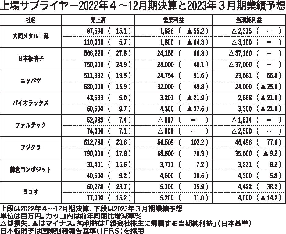 〈上場サプライヤー2022年4~12月期決算と2023年3月期業績予想〉(2/15付)