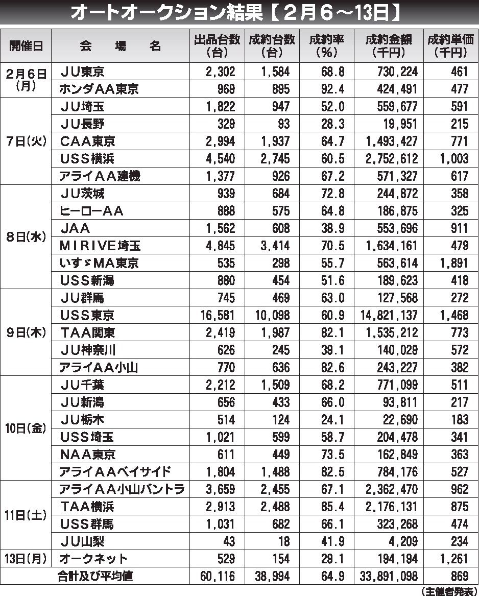 〈オートオークション結果〉首都圏 2023/2/6~13