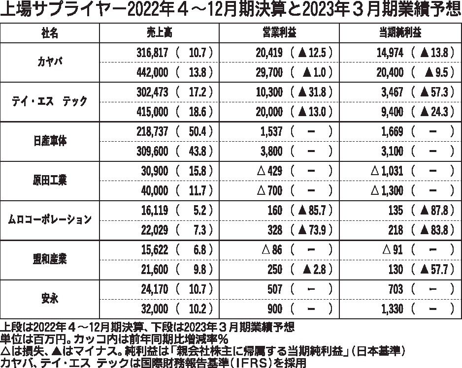 〈上場サプライヤー2022年4~12月期決算と2023年3月期業績予想〉(2/22付)