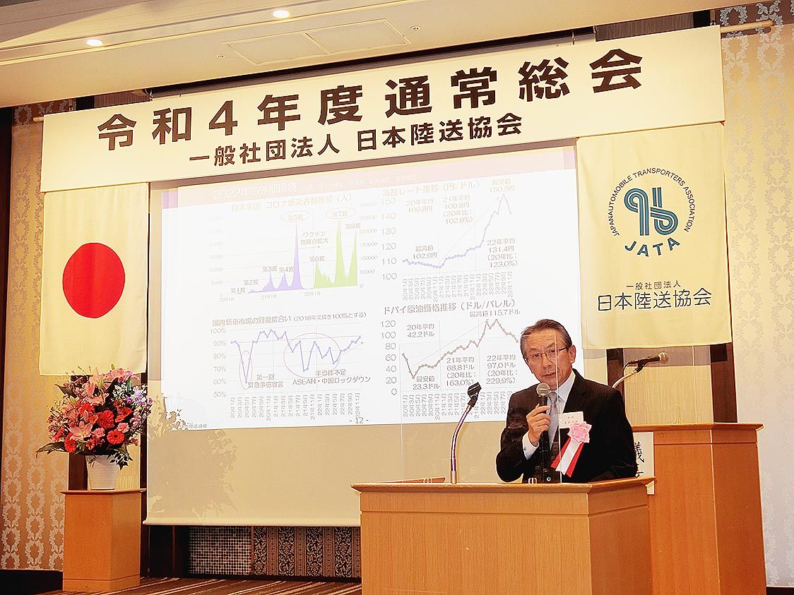 日本陸送協会(北村竹朗会長)の2022年度通常総会が、都内のホテルで開かれた。決算報告や役員改選など3つの議案が承認された。役員(理事)のうち綱島秀之・マツダロジスティックス社長ら5人が退任し、新任役員に籠谷清志・トヨタ輸送常務などが選ば...