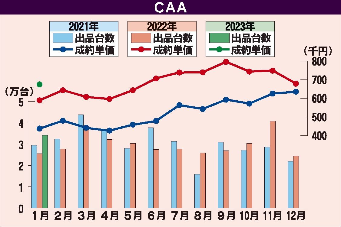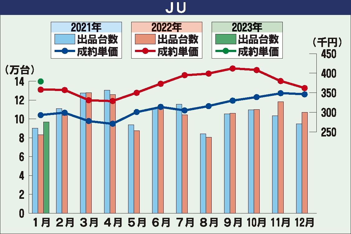 2022年前半から高騰を続けた中古車相場は、22年後半には平準化の動きを見せ始めた。新車販売台数の回復により下取り車が増加し、中古車流通台数が増えたことが市場に反映された。23年も21年の水準に近づくと予測されていたが、1月は前年同月を上...