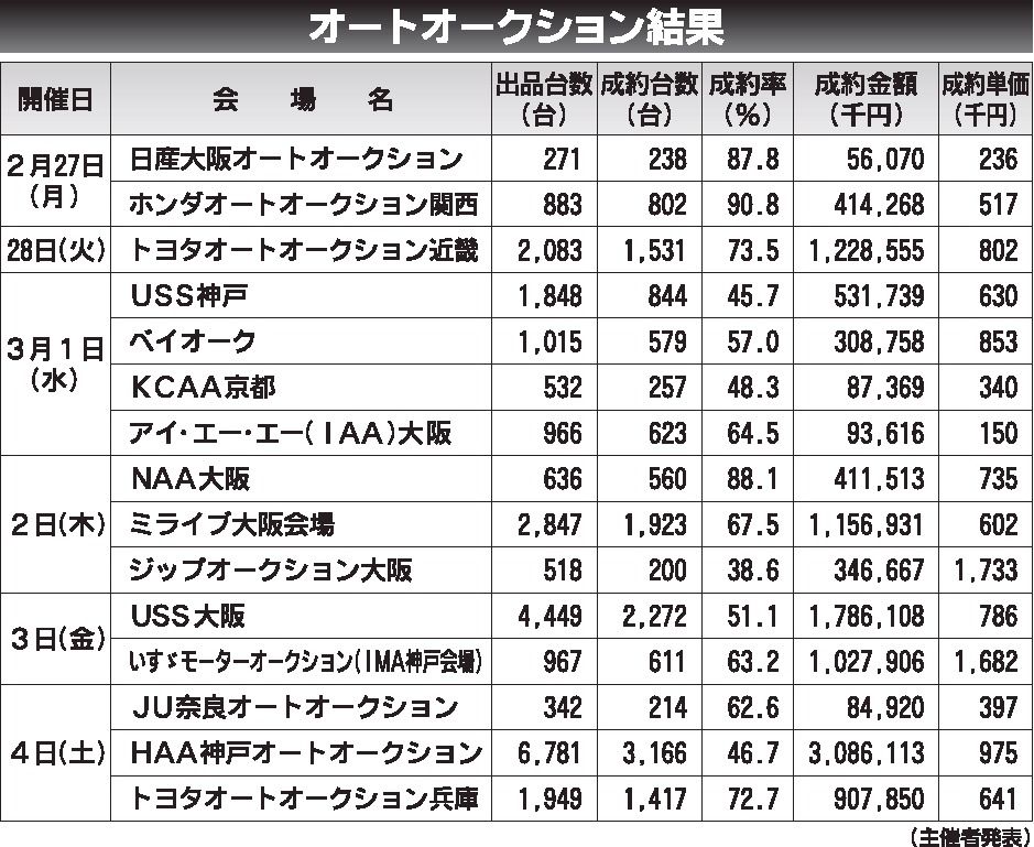 〈オートオークション結果〉近畿地区 2023/2/27~3/4