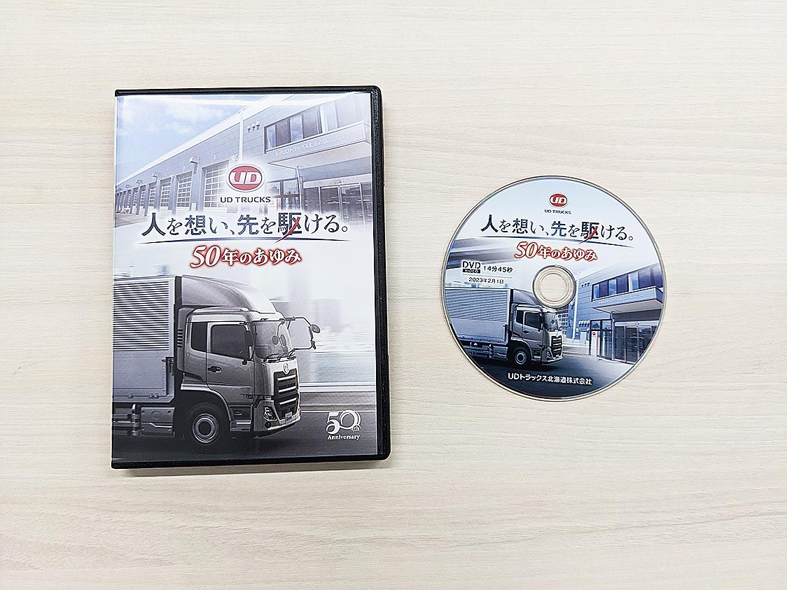 UDトラックス北海道(古舘利幸社長)は、創立50周年記念DVDを制作した=写真。会社の歴史を社会情勢やその時々の車種とともに振り返る内容で、14分45秒の中に50年のあゆみを動画で収録した。 2月1日で50周年を迎えた。コロナ禍などで大規...