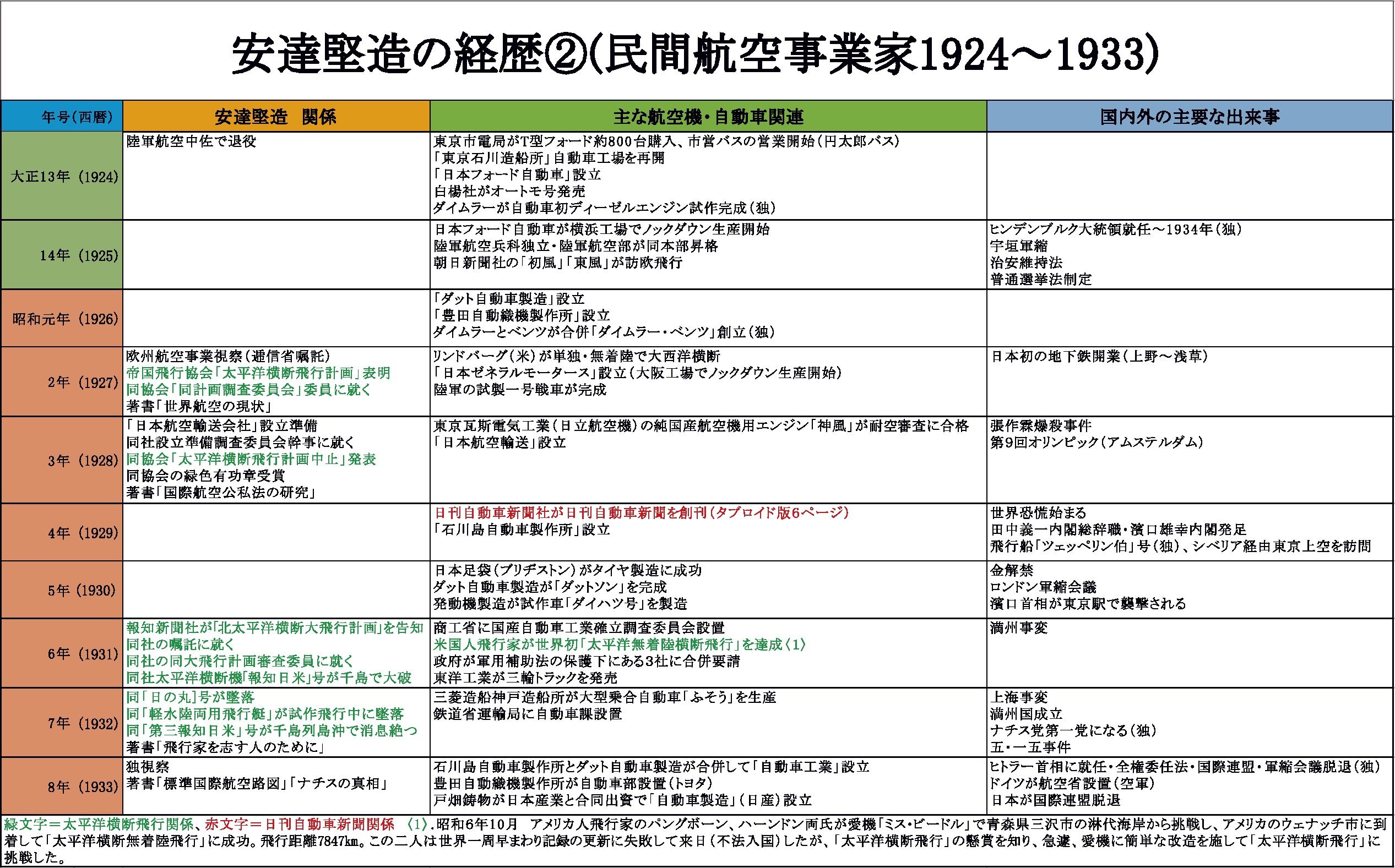 安達堅造が民間航空事業家と称した時期、日本は不景気で、閉塞感が漂い、今以上に格差社会であった。ただ、航空分野は挑戦と産業育成の時期を迎えていた。当初の軍事から、民間にも利用が拡大。新記録競争や曲芸飛行、著名な外国パイロットの来日など、派手...