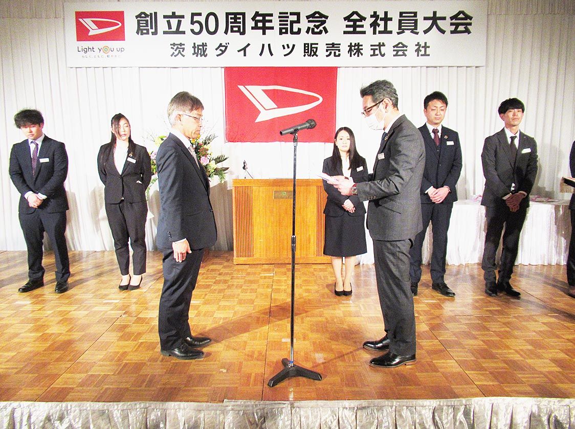【水戸】茨城ダイハツ(惣内茂社長)は、水戸市で「全社員大会」を開催した。全社員が出席する中、惣内社長が2023年の基本方針を発表、22年の優秀店舗と社員を表彰した=写真。 全社員大会ではダイハツ工業の武田裕介営業CS本部本部長のビデオメッ...