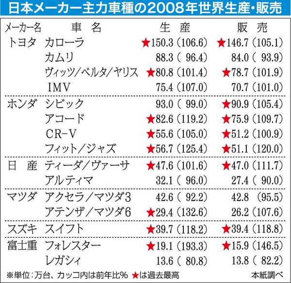日本車メーカーを代表するグローバルカーの2008年実績は、秋口までの新興国市場を中心とする販売好調による“貯金”が効いて過去最高の生産・販売が相次いだ。しかし、昨年9月15日のリーマンショックを境に状況は一変。金融危機に伴って自動車ローン...