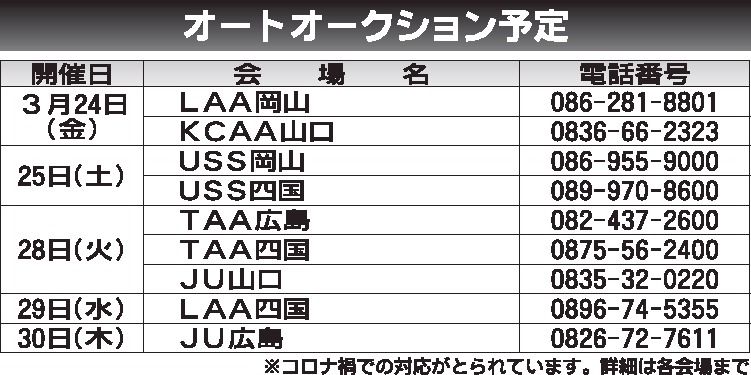〈オートオークション予定〉中国・四国地区 2023/3/24~30