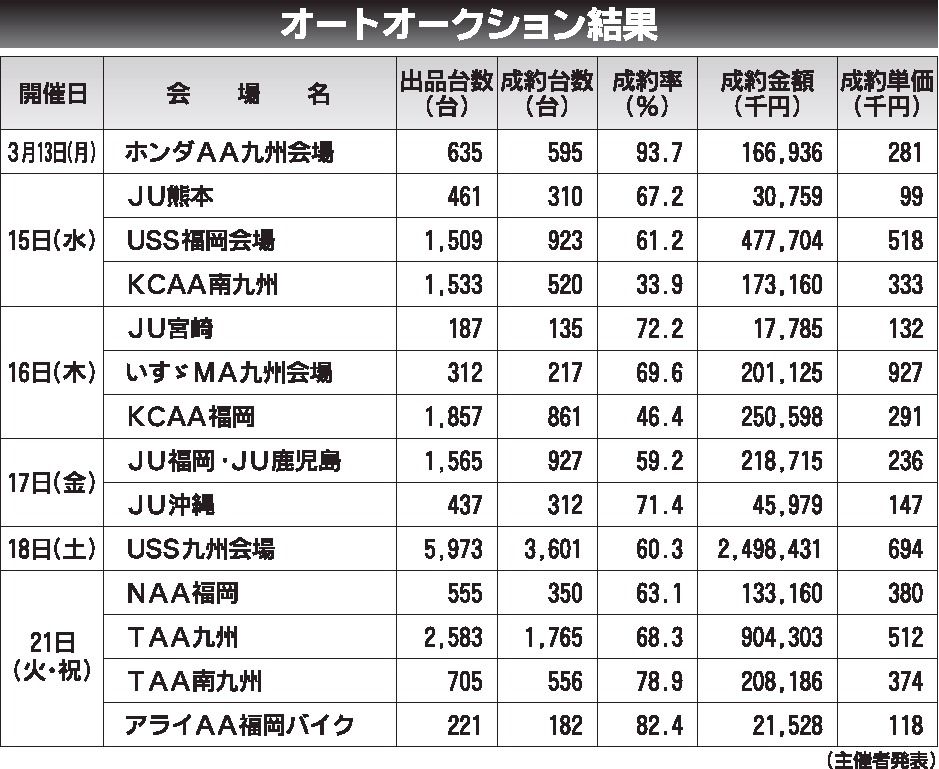 〈オートオークション結果〉九州地区 2023/3/13~21