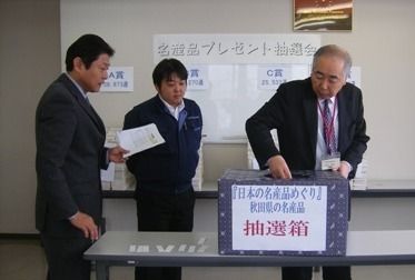 【秋田】日本自動車連盟(JAF)秋田支部(伊藤哲之支部長)はこのほど、JAFメイト12月号で募集した「日本の名産品めぐり 秋田県の名産品プレゼント」の抽選会を同支部会議室で行った。いなにわ手綯うどんやきりたんぽ鍋セットなど秋田名物が抽選で...