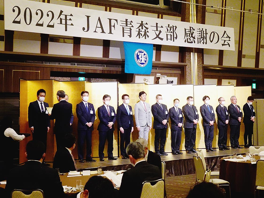 【青森】日本自動車連盟(JAF)青森支部(大野■支部長)は、青森市内のホテルで「2022年感謝の会」を開催、22年のJAF新規入会年間キャンペーンで好実績を残したディーラー、拠点および個人を表彰した。懇親会を含む感謝の会は4年ぶりの開催と...