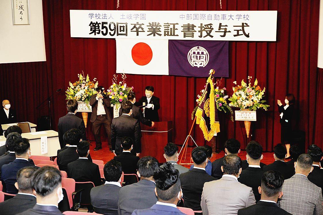 ■トヨタ名古屋自動車大学校 トヨタ名古屋自動車大学校(永田透校長)は、愛知県清須市の同校で「令和5年卒業式」を開催した=写真。来賓に中部運輸局自動車技術安全部の髙瀬竜児部長らを招き、自動車整備科185人と高度自動車科82人、ショールームスタ...