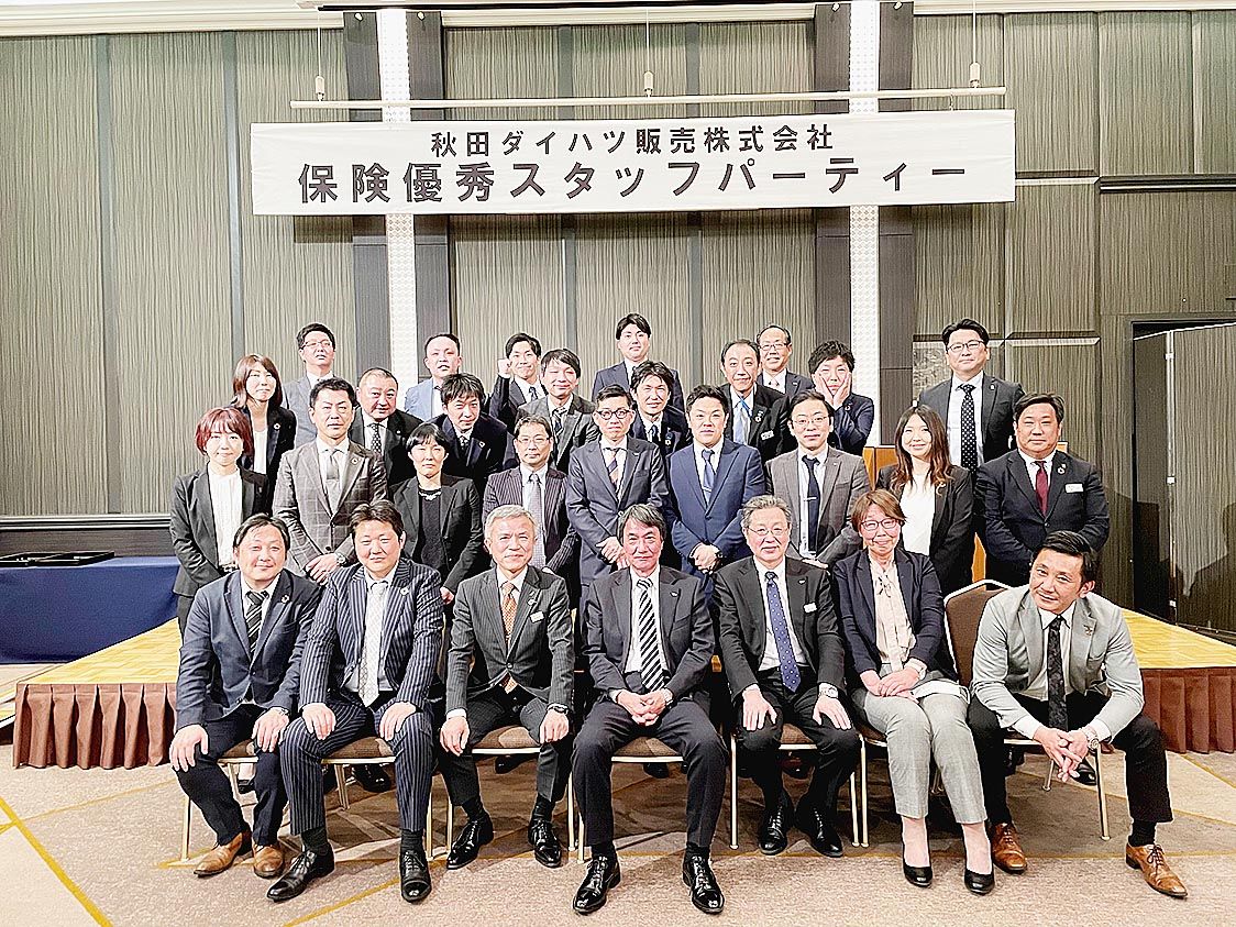 【秋田】秋田ダイハツ(長野高則社長)は、秋田市で「保険優秀スタッフパーティー」を開催した=写真。保険獲得による収益強化を図るための施策で、1年間で一定の実績を残した社員の労をねぎらった。コロナ禍を経て3年ぶりに対面式での開催となり、損害保...