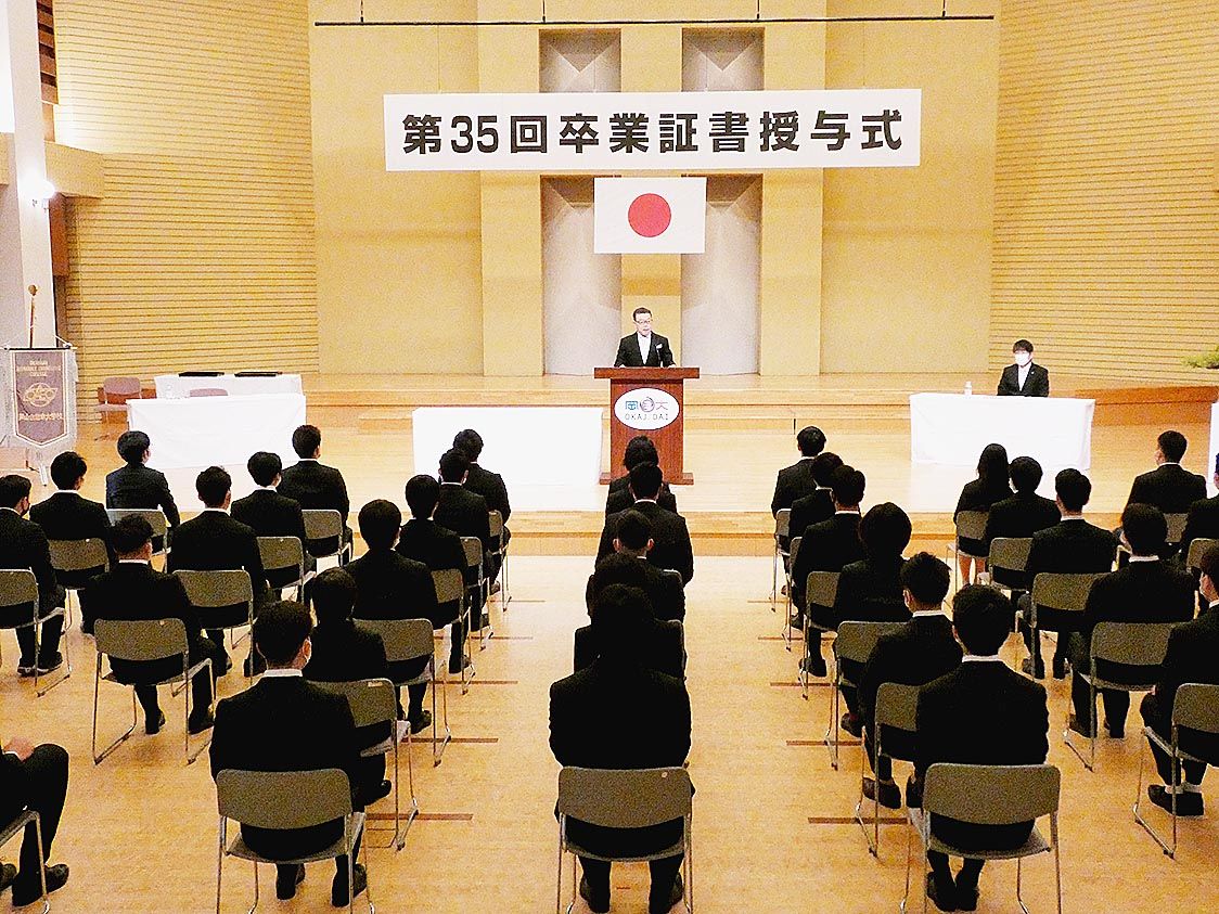 ■岡山自動車大学校 【岡山】岡山自動車大学校(原田公徳校長、岡山県浅口市)は17日、おかやま山陽高校の生石ホール(岡山県浅口市)で卒業式を開催=写真。保護者が見守るなか、1級自動車整備科21人と2級自動車整備科22人の総勢43人の卒業生に卒...