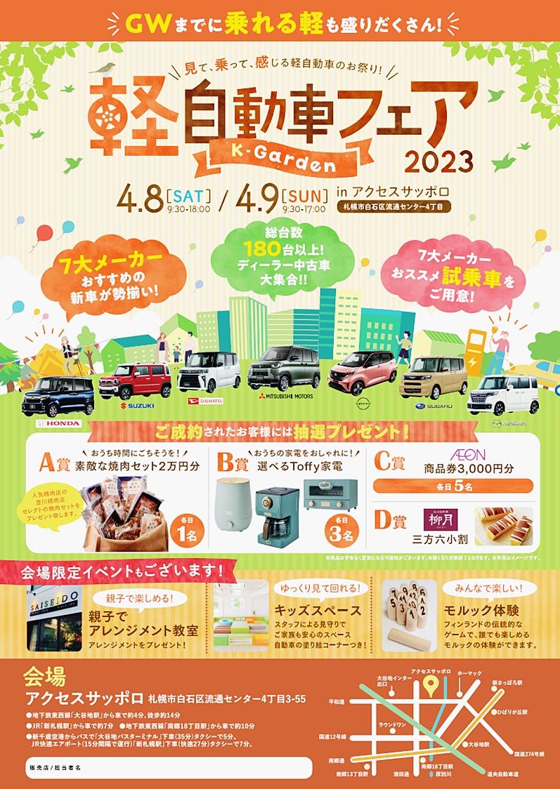 札幌と旭川で8、9日の2日間、地区の軽自動車協会が主催する小売りフェアが2年ぶりに開催される。軽自動車を扱う新車ディーラーが集まり、新車、中古車を展示。各社、既存客との商談だけでなく、新規客の取り込みを狙う。 旭川地区軽自動車協会(松倉直...