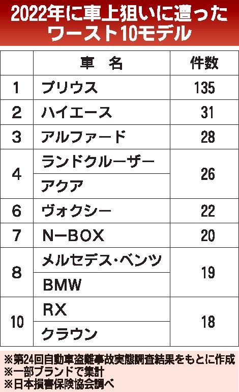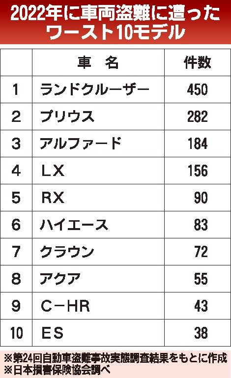 減少傾向にあった車両の盗難被害が再び増加に転じている。日本損害保険協会(白川儀一会長)が把握している2022年の車両盗難件数は、前年比9・5%増の2656件。ここ数年はコロナ禍で被害が少なくなっていたが、移動制限の緩和などもあり、犯罪グル...