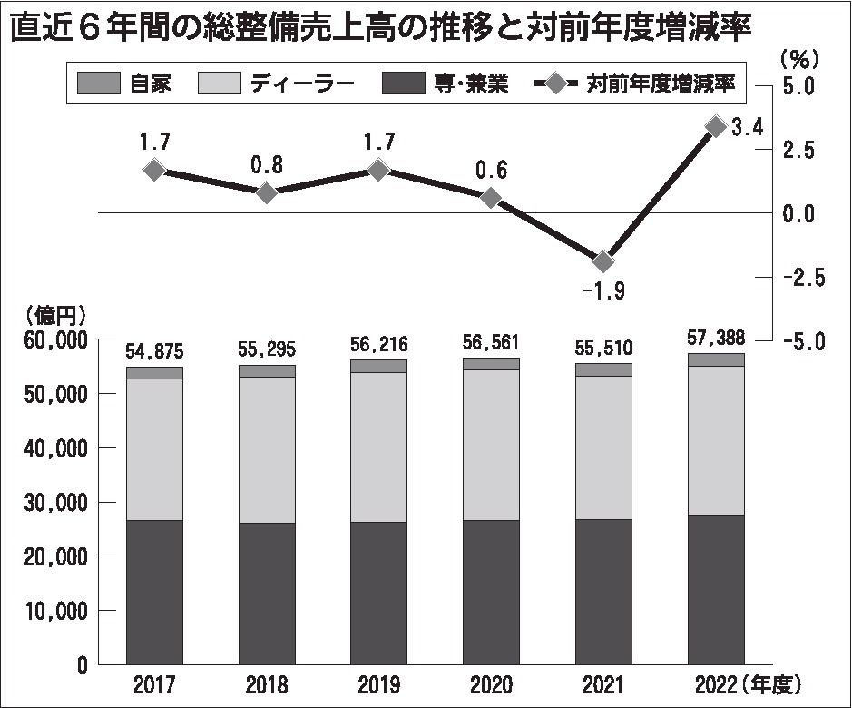 日本自動車整備振興会連合会(日整連、竹林武一会長)は2022年度版「自動車整備白書」をまとめた。ここ数年の自動車業界は新型コロナウイルス感染症の拡大や完成車のサプライチェーン(供給網)の混乱に影響を受けた。整備業もこのあおりを受けて、業績...