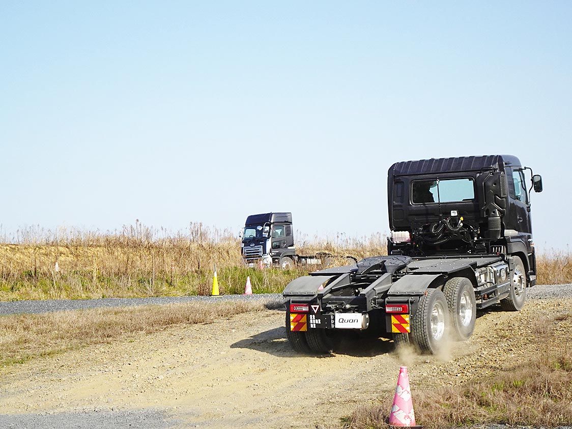 「クオンGW6×4トラクター」に試乗 凹凸路でも砂利の坂道もストレスなし
