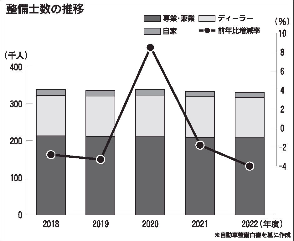 連載「整備業の足跡 2022年度版白書を読む」(3)人材(上)整備士数