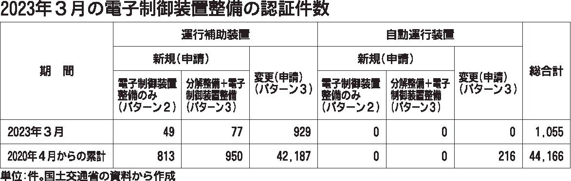 国交省、2023年2月の電子制御装置整備の認証件数は882件