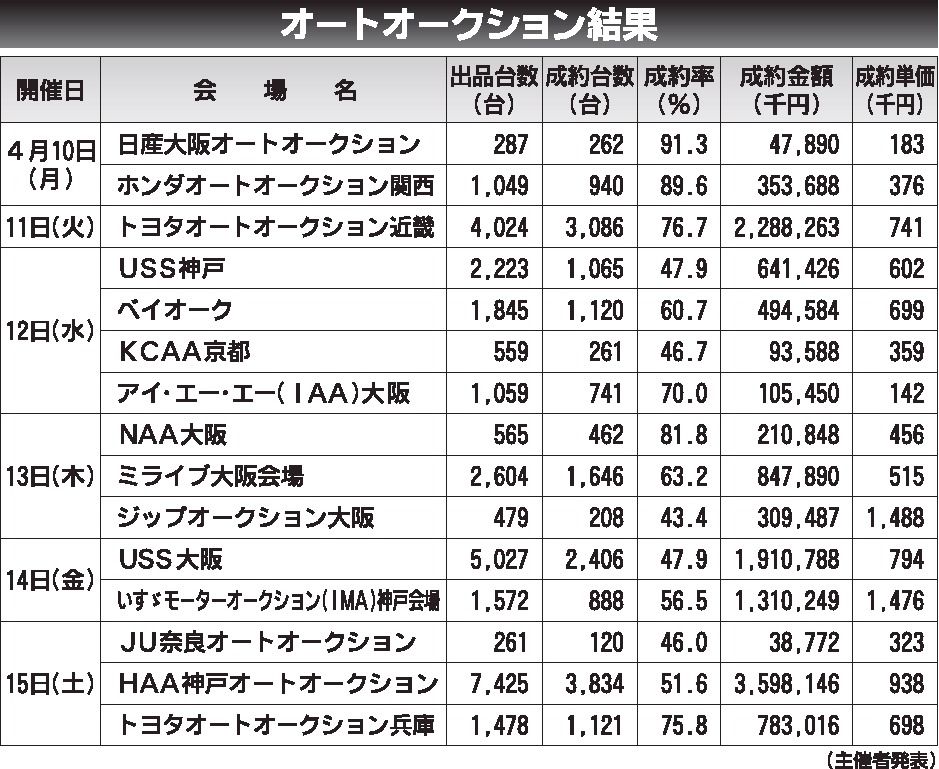 〈オートオークション結果〉近畿地区 2023/4/10~15