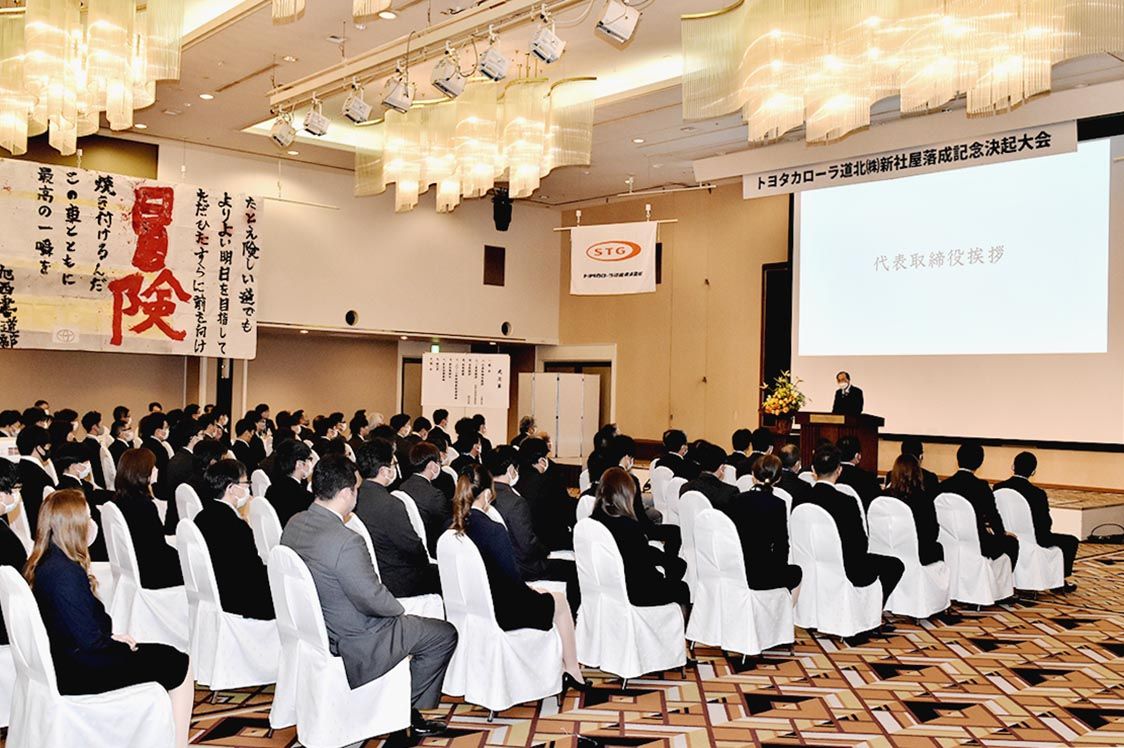 カローラ道北、全社員3年ぶり集まる 新社屋落成記念決起大会
