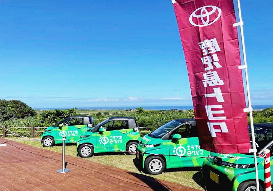 和泊町役場駐車場、知名町役場駐車場、フローラルホテル駐車場を発着場に4台を配置。「エラブのeクルマ」のラッピングで環境性能をPRしている。