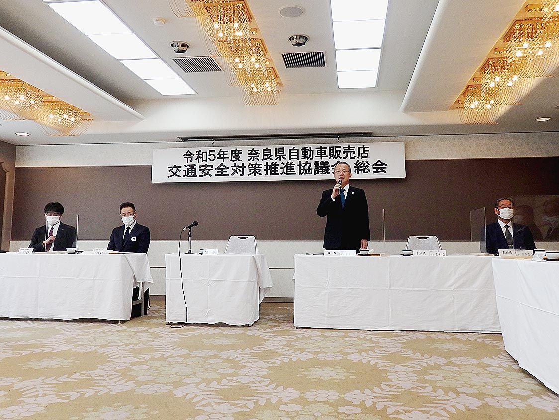 【奈良】奈良県自動車販売店交通安全対策推進協議会(菊池攻会長)は、奈良市内のホテルで「令和5年度総会」を開いた=写真。セーフティアドバイザー活動の推進や先進安全自動車の普及、「第30回安全運転チャレンジ100」活動の実施などを含めた202...
