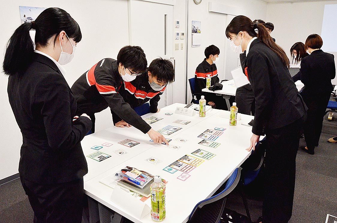 【秋田】日産サティオ秋田(児玉純一社長)は、秋田市の本社で「ジ・アクション!SDGsカードゲーム」のワークショップを開催した=写真。損害保険ジャパンが開発したコンテンツで、若手社員12人が参加してゲーム形式で楽しみながらSDGs(持続可能...