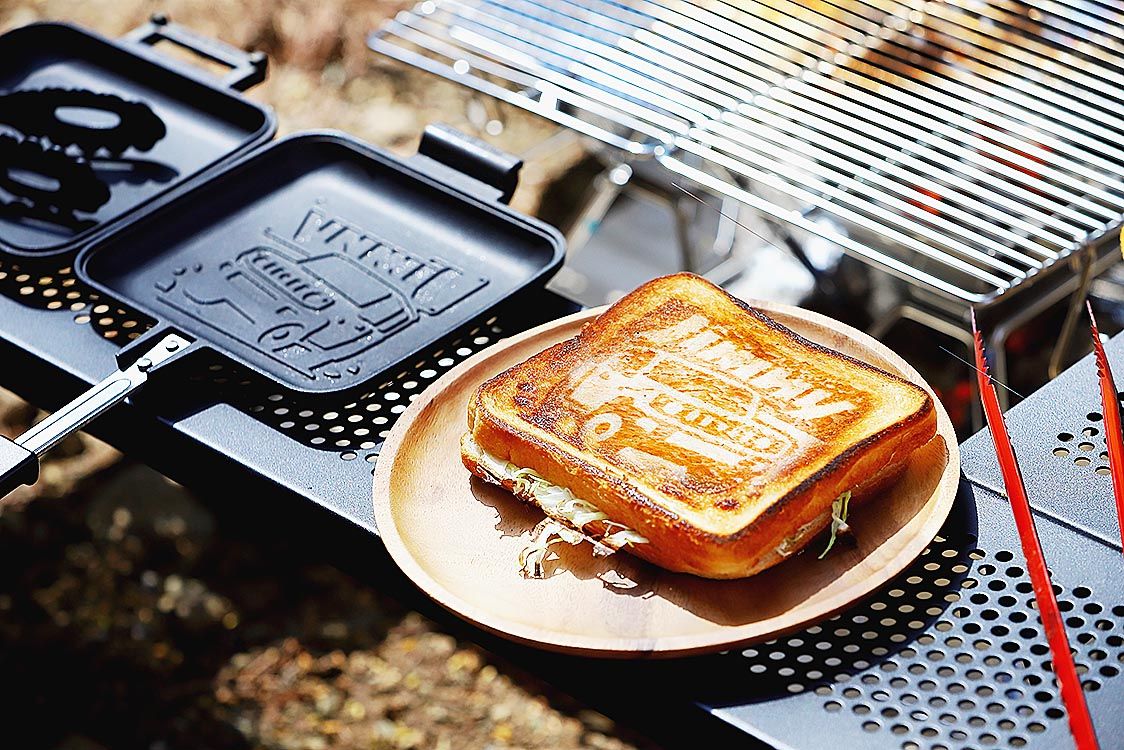 スズキとライセンス契約した製品で、ジムニーの公式ロゴのほか、オリジナルのイラストをホットサンドにあしらうことができる。プレートは着脱式のため、ミニフライパンとしても使用可能で、アウトドア以外の用途にも幅広く活用できるとしている。